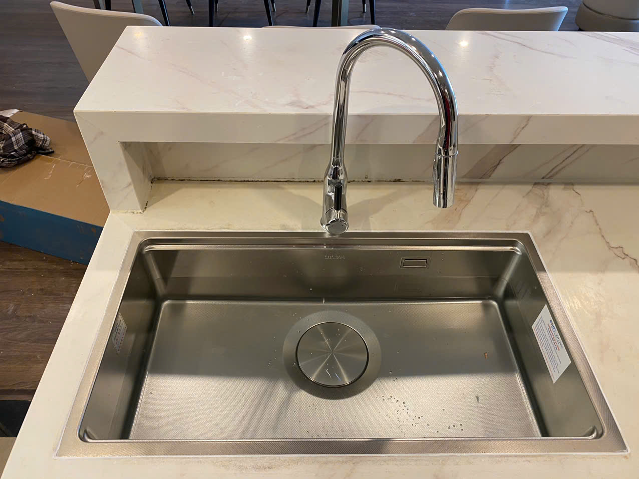 Thân chậu: Hố rửa rộng rãi, sâu, tiện lợi cho việc rửa xoong nồi và bát đĩa kích thước lớn.