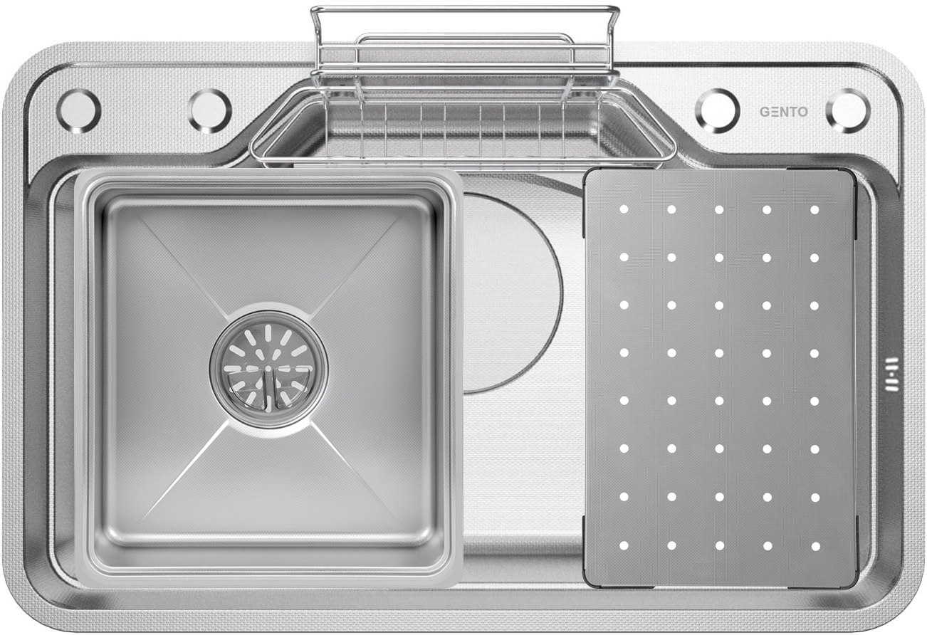Chậu rửa Gento GT04-7848 Smart là mẫu chậu rửa bát 1 hố Gento cao cấp, thiết kế theo phong cách Workstation Sink Nhật Bản, mang lại sự tiện nghi và thẩm mỹ vượt trội cho gian bếp. Với bề mặt dập hạt Linen siêu nhỏ chống xước, sản phẩm không chỉ bền bỉ mà còn giữ được vẻ sáng bóng sang trọng theo thời gian.