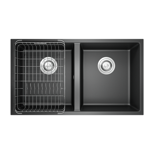 Chậu rửa bát đá Veloci 760D Black nằm trong bộ sưu tập chậu vòi đá cao cấp của Konox – Kiệt tác Ý trong lòng bếp Việt.