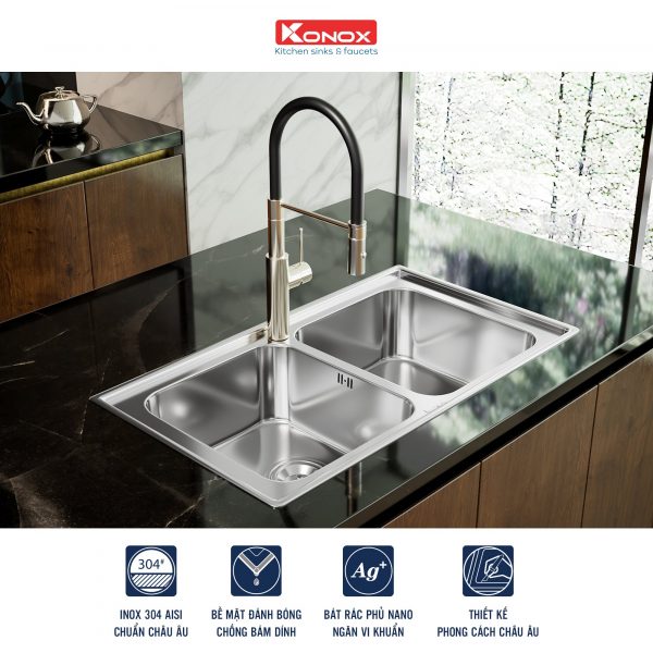 Model Premium KS8650 2B thuộc bộ sưu tập European Series của Konox, là dòng chậu mang đậm hơi hướng truyền thống từ bề mặt mạ Polishing bóng đến thiết kế lòng chậu bo tròn mềm mại.