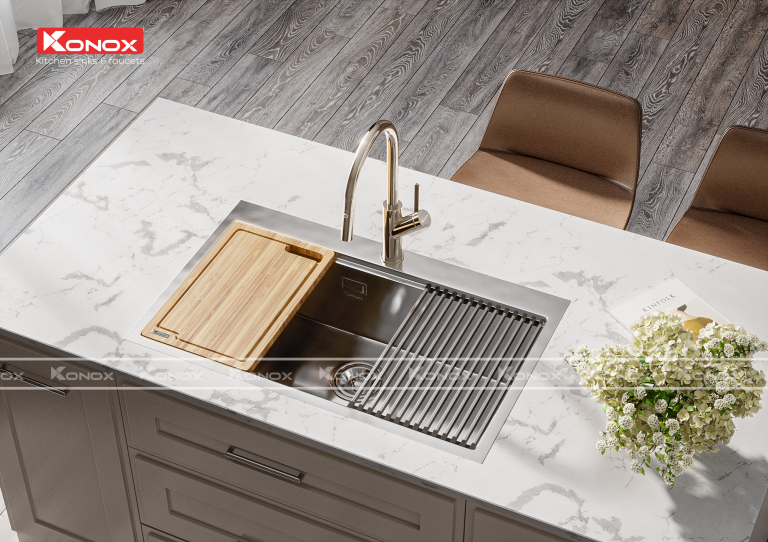 - Dòng chậu hạ bậc – tích hợp công năng: thớt gỗ, rollmat