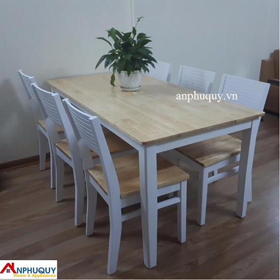 Bộ bàn ăn 6 ghế gỗ cao su sơn trắng