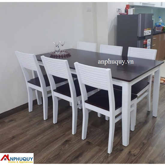 Mẫu bộ bàn ăn 6 ghế dành cho gia đình có nhiêu thành viên, chất liệu gỗ cao su bộ bàn ghế ăn với sắc màu trắng nhẹ nhàng, kiểu dáng thanh mảnh hiện đại và thiết kế khá nhỏ gọn manng đến sự thoải mái và rộng rãi khi bước vào không gian bếp. Bộ bàn ghế sử dụng những màu trắng trong sơn tường và nội thất đang là xu hướng mới trong các căn chung cư hiện nay.