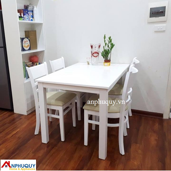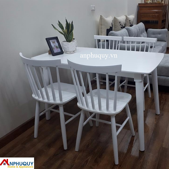 Bộ bàn ăn 4 ghế gỗ cao su sơn trắng hiện đại