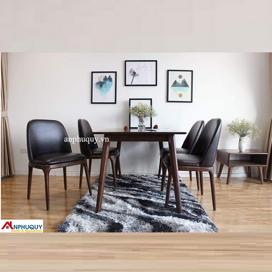 Bộ bàn ăn 4 ghế gỗ cao su bộc nệm đen hiện đại