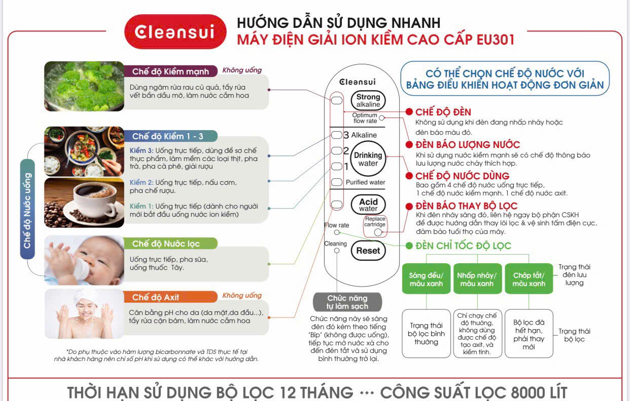 Máy lọc nước ion kiềm Mitsubishi Cleansui EU301 không chỉ là thiết bị lọc nước thông thường mà còn là giải pháp chăm sóc sức khỏe toàn diện cho gia đình. Với công nghệ điện phân tiên tiến, tiêu chuẩn chất lượng khắt khe từ Nhật Bản và thiết kế hiện đại, đây là lựa chọn đáng đầu tư cho người dùng hướng đến cuộc sống khỏe mạnh và tiện nghi.
