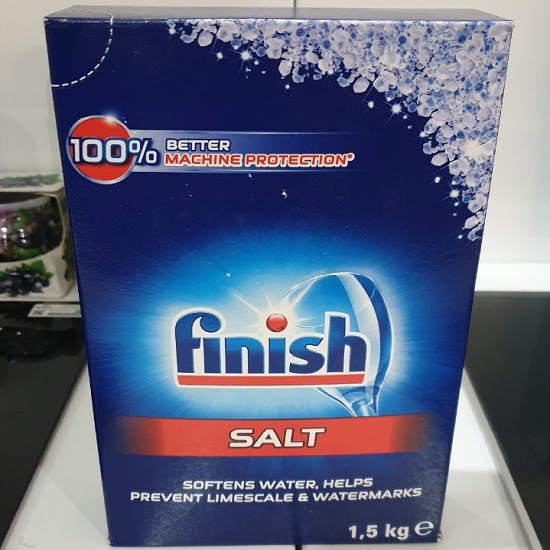 - Muối rửa chén Finish Dishwasher Salt 1.5kg giúp làm mềm nước trong máy rửa chén, tặng tuổi thọ của máy rửa chén. Nếu không sử dụng muối làm mềm nước lâu ngày cặn canxi, magie có trong nước sẽ gây lên sự tích tụ cặn vôi trong máy rửa chén, đồng thời làm giảm tính năng của viên rửa chén, gây tắc vòi phun nước, ống dẫn và đặc biệt tạo ra các mảng bám trên chén đĩa, các đồ sành sứ, thủy tinh, inox và các dụng cụ nhà bếp của bạn.