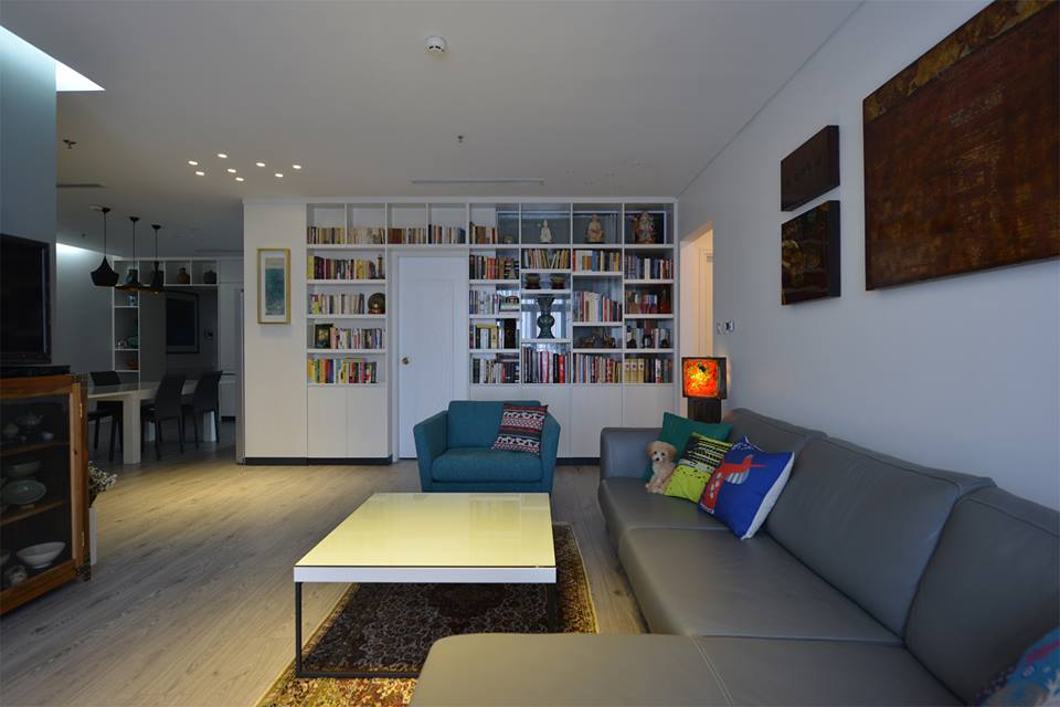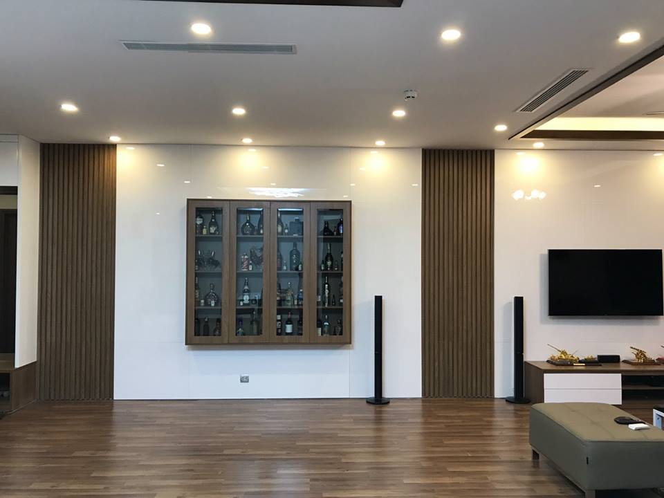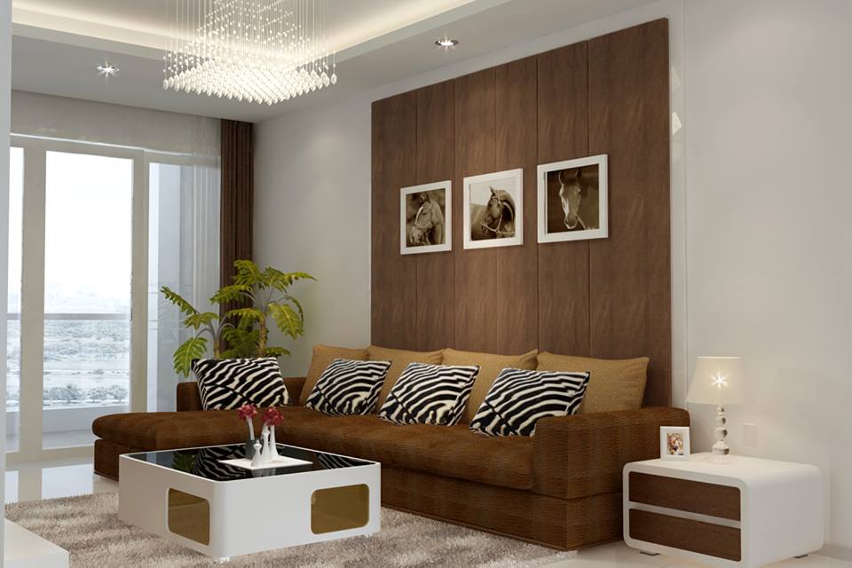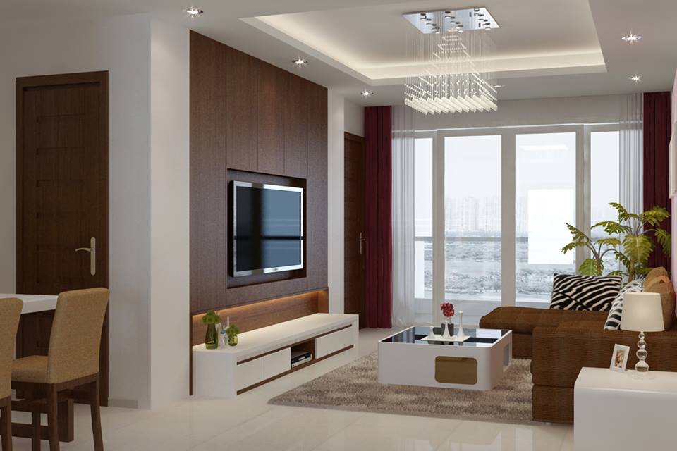 Những mẫu phòng khách hiện đại rất phù hợp với chung cư. Các loại vật liệu được lựa chọn: Veneer Sồi kết hợp sơn trắng