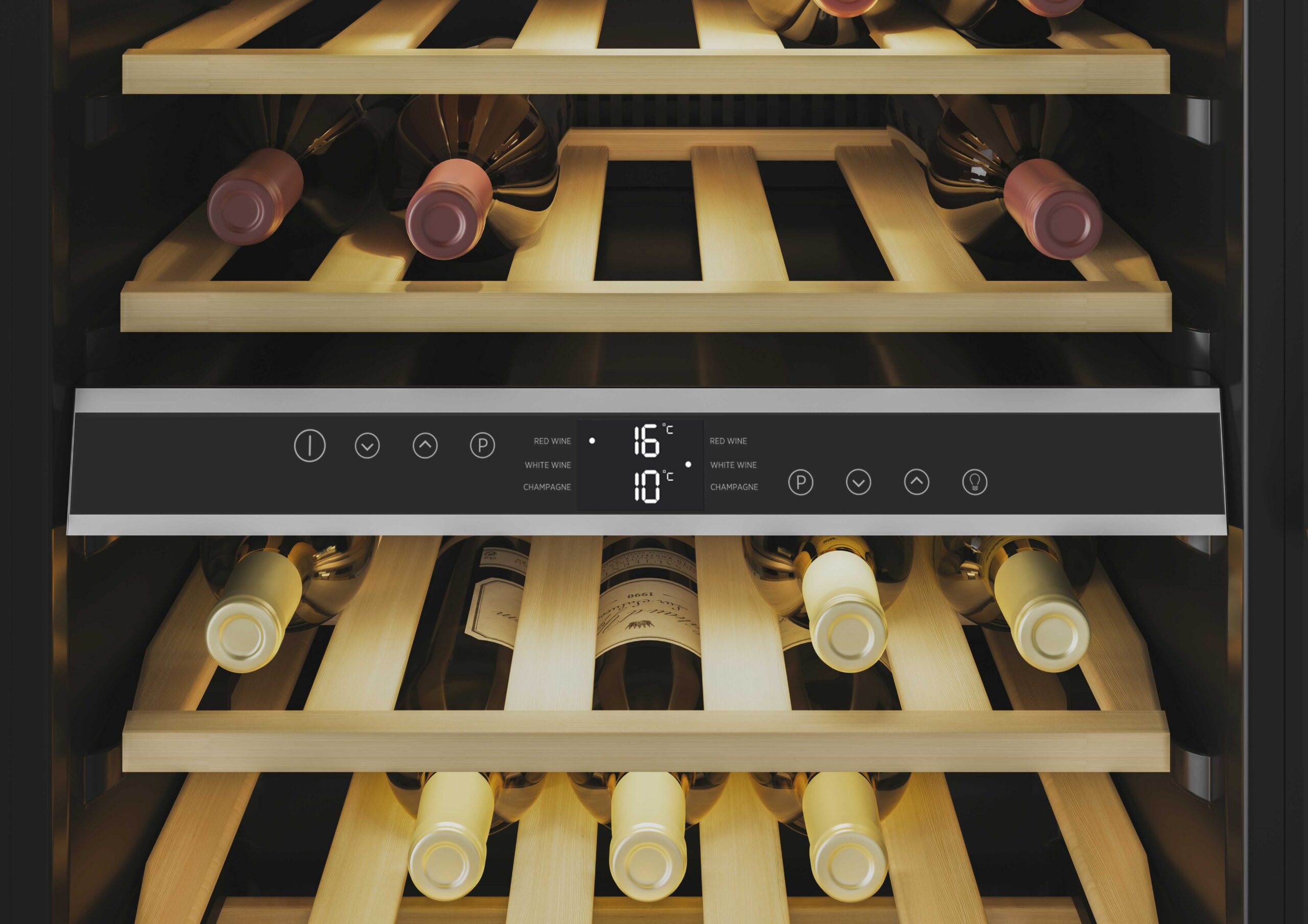 Tủ bảo quản rượu Rosieres RWC154DE cho phép cài đặt 2 vùng nhiệt độ riêng biệt trong dải 7°C – 18°C, phù hợp bảo quản cả vang đỏ, vang trắng và vang sủi.