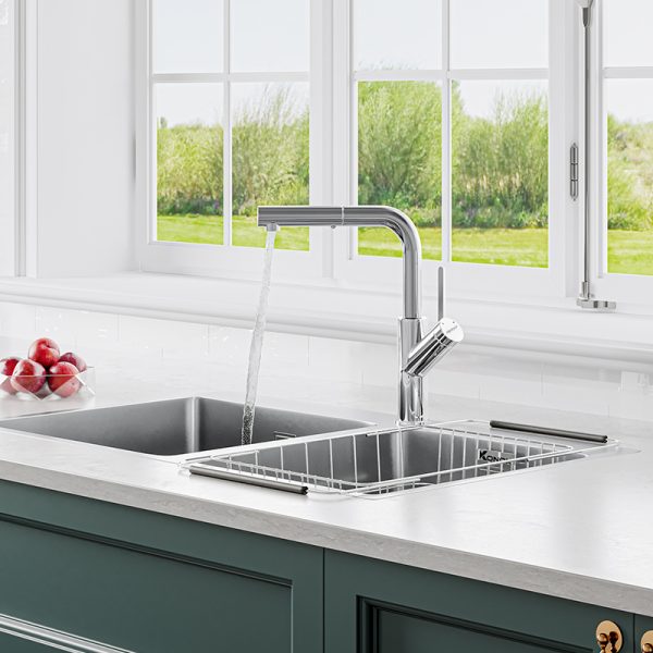 Dây rút linh hoạt: Đầu vòi kéo rút, dễ dàng làm sạch từng góc nhỏ trong chậu rửa.